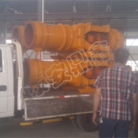湿式除尘风机由矿用通风机与湿式振弦捕尘器组成。含尘空气被除尘风机吸入后,经过湿式振弦捕尘器将粉尘捕获,就地除尘净化,除尘后净化的气流从捕尘器出风口排出,达到净化风流的目的。